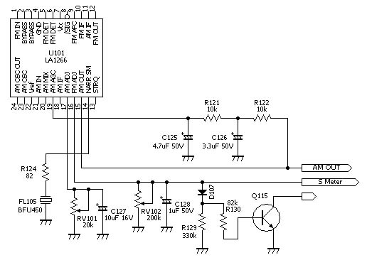 右は S メータ回路部分を基板の配線パターンから回路図化したものです。