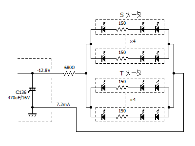 LED は DC 駆動する必要があり、この電源を [C136] 電解コンデンサの両端から取ります。