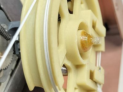 バリコンに使っているプーリーの先に妙なモノが接着されています。