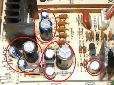 赤〇で囲んだ電解コンデンサを交換しました。