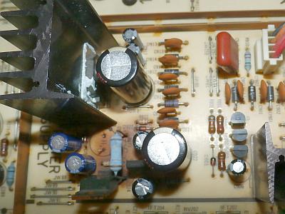 交換した電解コンデンサは熱を持つ放熱器から少しでも離す工夫をしています。