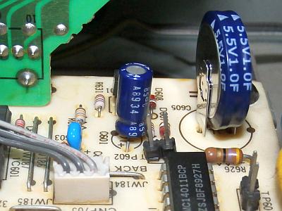 これを 1F/5.5V 電気二重層コンデンサに交換しました。