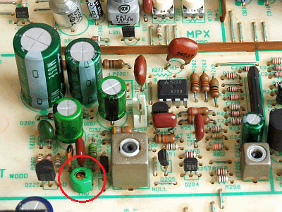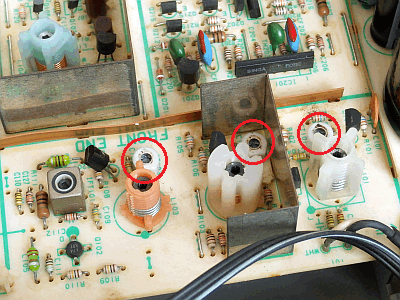 FM トリマコンデンサ [CT101] [CT102] [CT103] と、PLL 検波トリマコンデンサ [CT201] の調整ネジ部分が真っ黒です。