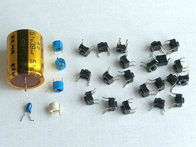 金色の部品が [電気二重層コンデンサ] で、その下の小さ青いな部品が [タンタルコンデンサ] です。