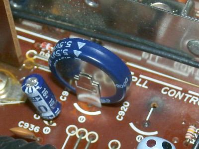 [C920] [C921] 2個の電気二重層コンデンサとも膨張して被覆から飛び出しています。