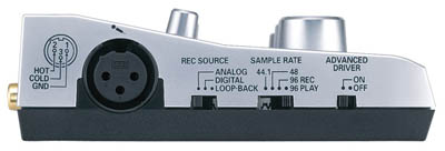 側面のスイッチで [REC SOURCE] [SAMPLE RATE] [ADVANCED DRIVER] を切換できます。