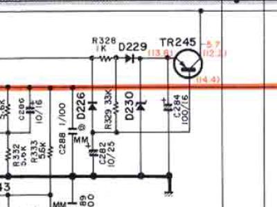 | R203 (470Ω) 右側 | +13.2V | +13.3V | 〇 | [REC CAL] OFF にて測定 R203 は VR201 の北東15mm |