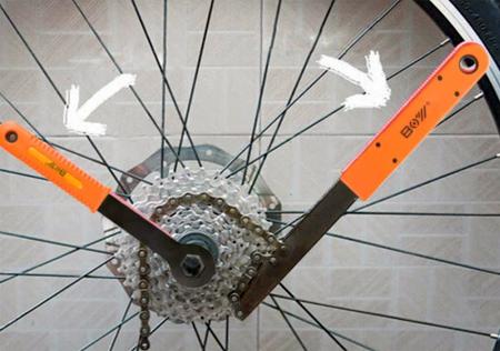 原理的には、[スプロケットリムーバ] でカセットの回転を止め、[フリーホイールリムーバ] で [ロックリング] を緩めるのです。
