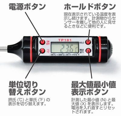 で接触型デジタル温度計の Digital Thermometer TP101 が送料税込500円でした。