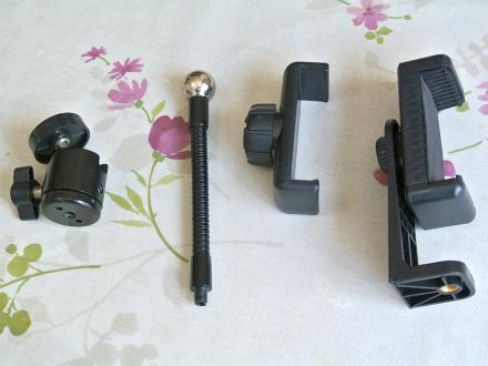 付属品は下の写真の [ライトスタンド] [スマホスタンド] [雲台] [スマホソフトチューブ] [リモコン] などです。