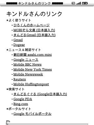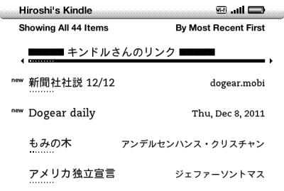 Kindle3 から操作でき、データは直接 push されるので非常に楽。 外出時でも 3G 通信で自己完結できる。 タイトルと作者名は Home に日本語で表示される。 |