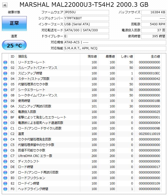 [電源投入回数 37回] [使用時間 395時間] と、準新品のレベルです。