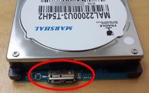 内蔵 HDD の基板のコネクタは、以下の写真のように USB3.0 だけでした。