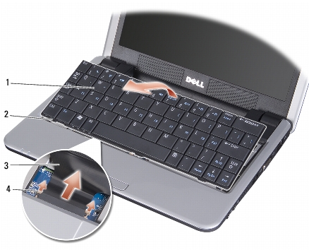 注意:キーボードの取り外しや取り扱いには十分注意してください。キーボードを乱暴に扱うと、ディスプレイパネルに傷が付く場合があります |