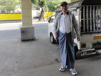 ミャンマーの皆さんは腰巻みたいなスカートみたいなロンジーを着て涼しげに歩いています。