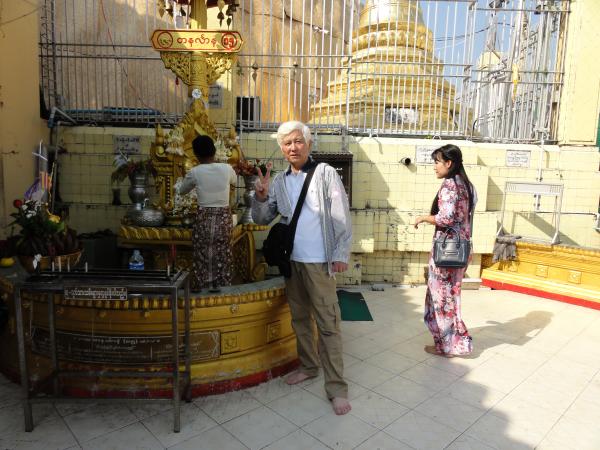 右はボタタングパゴダのお祈り場所での記念写真