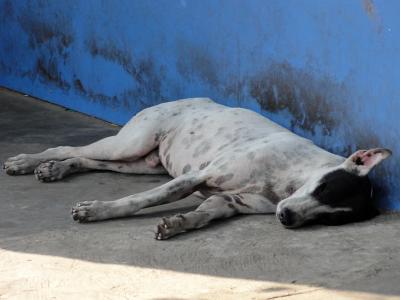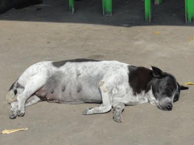 昼間、ヤンゴンの犬はこのように、だらしない恰好で寝ています