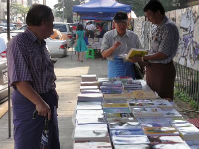 本屋や CD/DVD ショップはみかけたことがありませんが、どちらも露店で買えます。