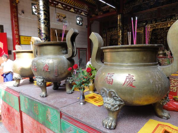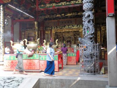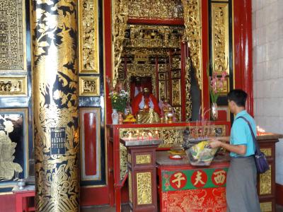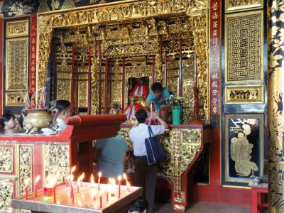 建物や内部は典型的な中国系寺院で、実にあざやかな装飾で満ちています