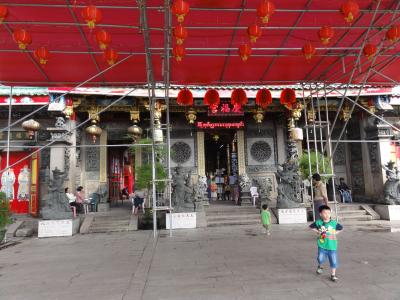 境内の広場は何かのイベントがあるらしく(春節?)、鉄パイプで仮の天井が作られていました。